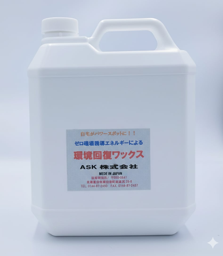 『新・環境回復ワックス』は、会田伸一氏の開発した新・抗酸化溶液という特殊酵素が配合されたウレタンワックスです。