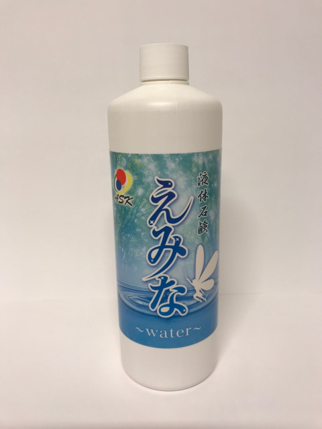 『えみな-Water-』は、食洗機やドラム洗濯機と家電製品が多様化する中、“安全”かつ“より使いやすい”石鹸が欲しいという消費者のニーズから生まれた天然パームやし100%の液体石鹸です。天然のパーム核油を主成分とし、そこに、抗酸化溶液という特殊酵素を使い、研究開発されたニュータイプの液体石鹸で、CS(化学物質過敏症)の方でも安心して使用できるように精製しました。また、液体にすることにより、泡立ち・汚れ落ちもUPさせることに成功しました。